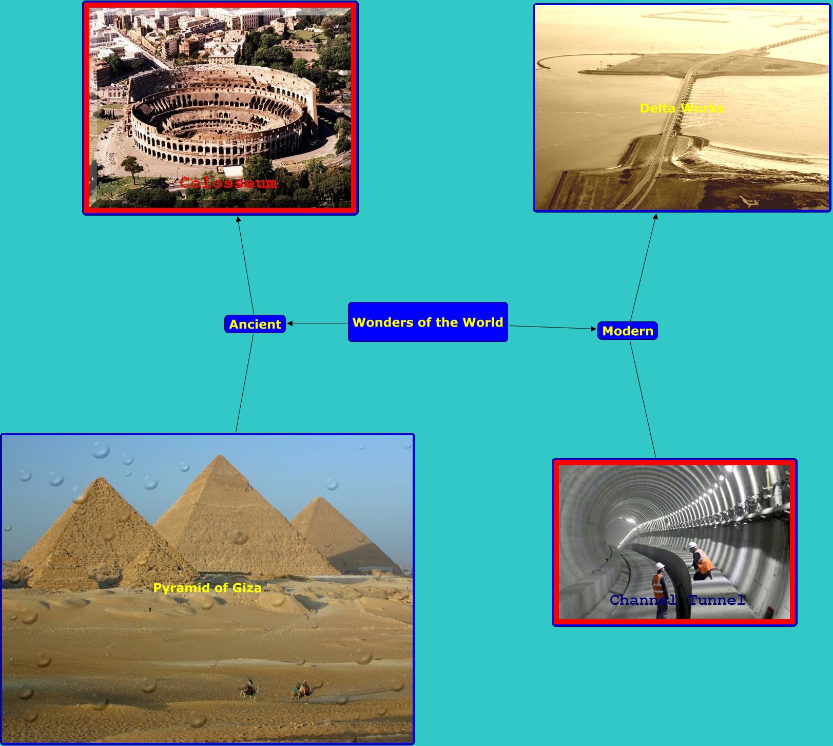 This Concept Map, created with IHMC CmapTools, has information related to: Wonders of the World, Ancient Pyramid of Giza, Wonders of the World Modern, Modern Delta Works, Modern, Wonders of the World Ancient, Ancient