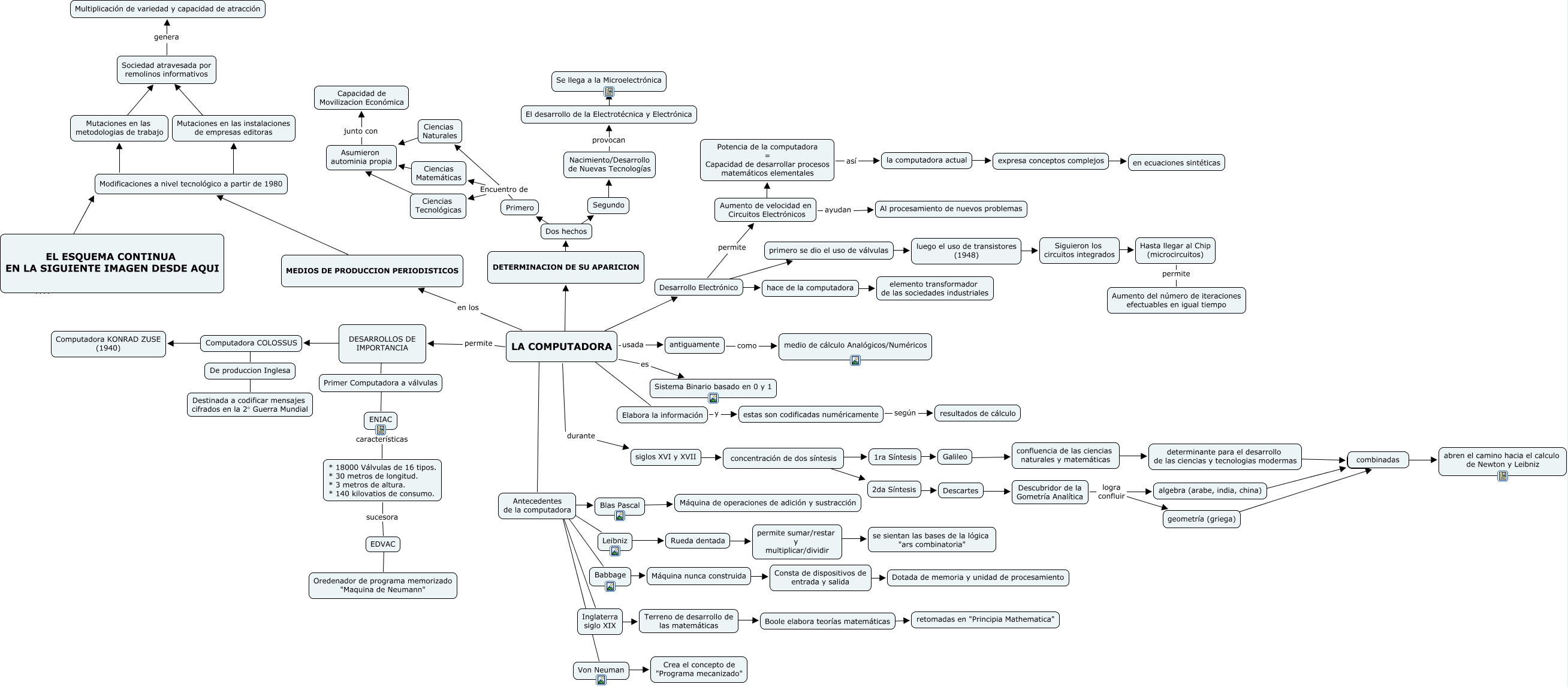 Este Cmap, tiene información relacionada con: primera parte de usos tecnologicos, LA COMPUTADORA ???? DETERMINACION DE SU APARICION, DETERMINACION DE SU APARICION ???? Dos hechos, Aumento de velocidad en Circuitos Electrónicos ayudan Al procesamiento de nuevos problemas, Hasta llegar al Chip (microcircuitos) permite Aumento del número de iteraciones efectuables en igual tiempo, LA COMPUTADORA en los MEDIOS DE PRODUCCION PERIODISTICOS, ENIAC características * 18000 Válvulas de 16 tipos. * 30 metros de longitud. * 3 metros de altura. * 140 kilovatios de consumo., hace de la computadora ???? elemento transformador de las sociedades industriales, DESARROLLOS DE IMPORTANCIA ???? Primer Computadora a válvulas, MEDIOS DE PRODUCCION PERIODISTICOS ???? Modificaciones a nivel tecnológico a partir de 1980, Blas Pascal ???? Máquina de operaciones de adición y sustracción, LA COMPUTADORA usada antiguamente, Asumieron autominia propia junto con Capacidad de Movilizacion Económica, Antecedentes de la computadora ???? Babbage, Potencia de la computadora = Capacidad de desarrollar procesos matemáticos elementales así la computadora actual, EDVAC ???? Oredenador de programa memorizado "Maquina de Neumann", Inglaterra siglo XIX ???? Terreno de desarrollo de las matemáticas, Primer Computadora a válvulas ???? ENIAC, determinante para el desarrollo de las ciencias y tecnologias modermas ???? ????, Ciencias Matemáticas ???? Asumieron autominia propia, 1ra Síntesis ???? Galileo