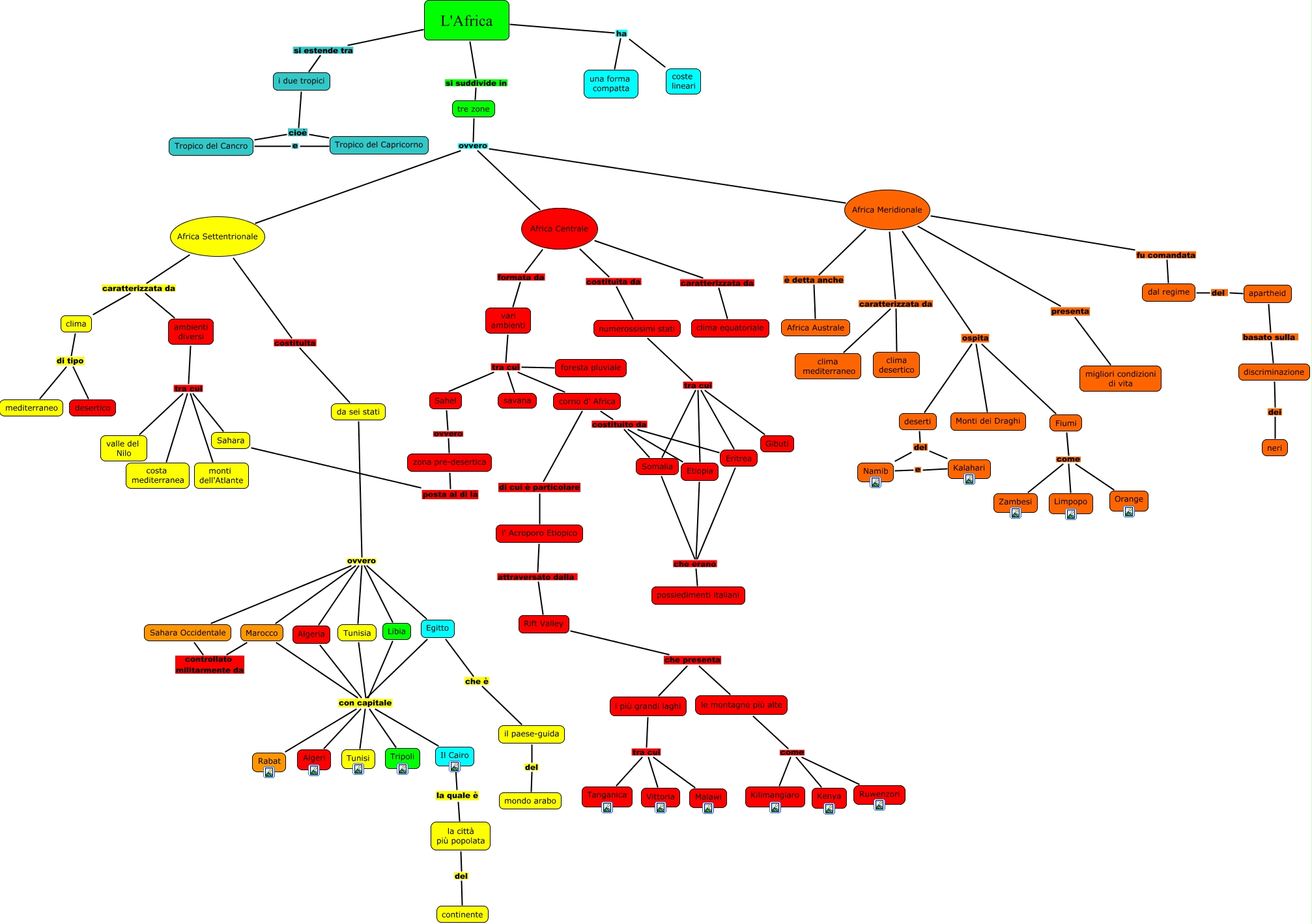 Questa Cmap, creata con IHMC CmapTools, contiene informazioni relative a: Africa_Scalia, Africa Centrale caratterizzata da clima equatoriale, Fiumi come Zambesi, Africa Meridionale caratterizzata da clima mediterraneo, Algeria con capitale Algeri, Algeria con capitale Tunisi, zona pre-desertica posta al di là Sahara, apartheid basato sulla discriminazione, tre zone ovvero Africa Centrale, Sahara Occidentale controllato militarmente da Marocco, Libia con capitale Il Cairo, la città più popolata del continente, Tunisia con capitale Tunisi, Egitto con capitale Algeri, numerossisimi stati tra cui Gibuti, clima di tipo desertico, Libia con capitale Algeri, corno d' Africa di cui è particolare l' Acroporo Etiopico, tre zone ovvero Africa Settentrionale, da sei stati ovvero Algeria, L'Africa ha coste lineari