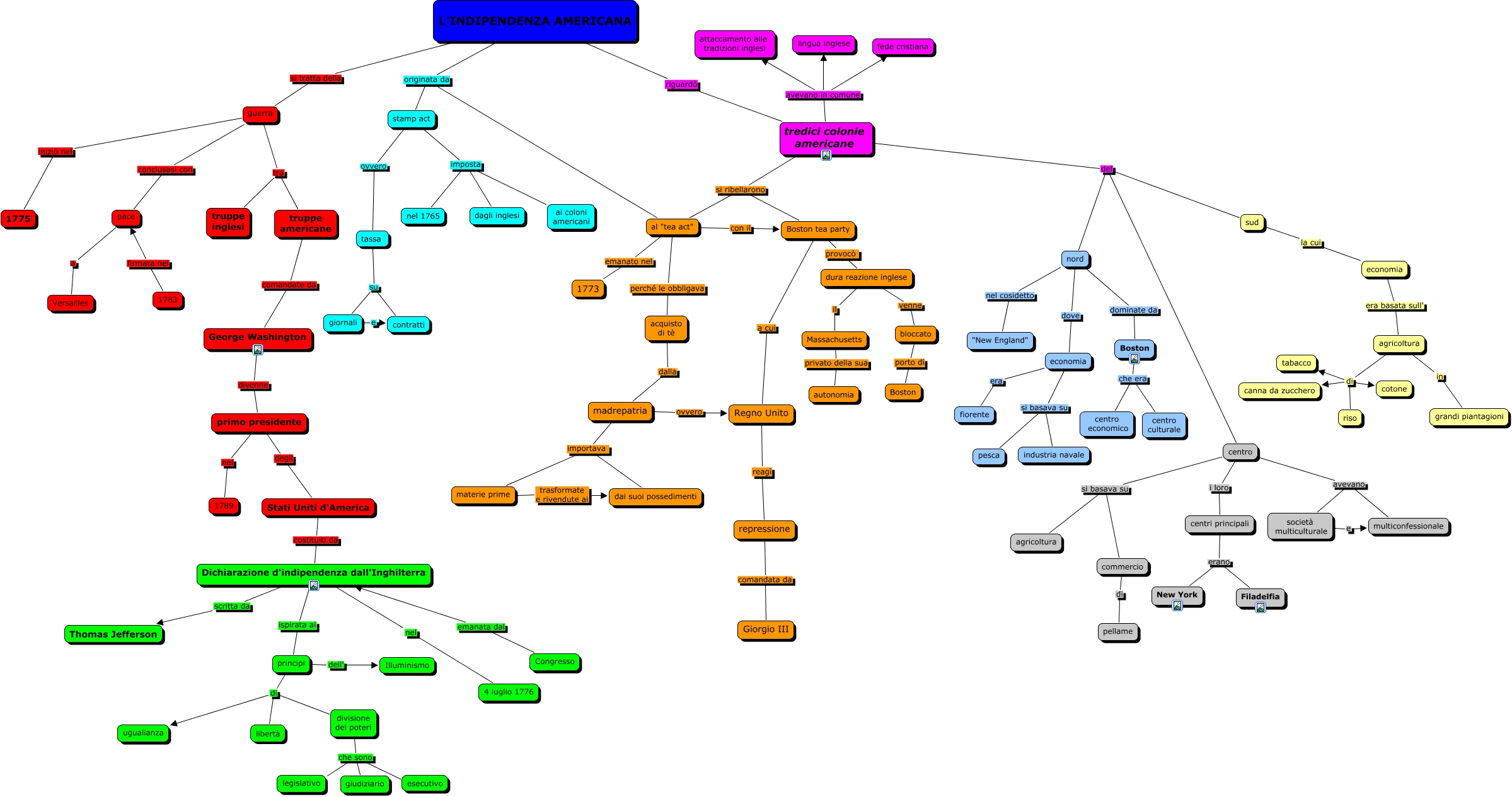 Questa Cmap, creata con IHMC CmapTools, contiene informazioni relative a: indipendenza_americana_Facciolati, centri principali erano New York, tredici colonie americane avevano in comune fede cristiana, sud la cui economia, L'INDIPENDENZA AMERICANA originata da al "tea act", repressione comandata da Giorgio III, tredici colonie americane si ribellarono al "tea act", economia si basava su industria navale, Massachusetts privato della sua autonomia, tredici colonie americane del sud, tredici colonie americane avevano in comune lingua inglese, al "tea act" perché le obbligava acquisto di tè, principi dell' Illuminismo, società multiculturale e multiconfessionale, Dichiarazione d'indipendenza dall'Inghilterra nel 4 luglio 1776, economia si basava su pesca, centro si basava su agricoltura, guerra iniziò nel 1775, primo presidente degli Stati Uniti d'America, madrepatria ovvero Regno Unito, giornali e contratti