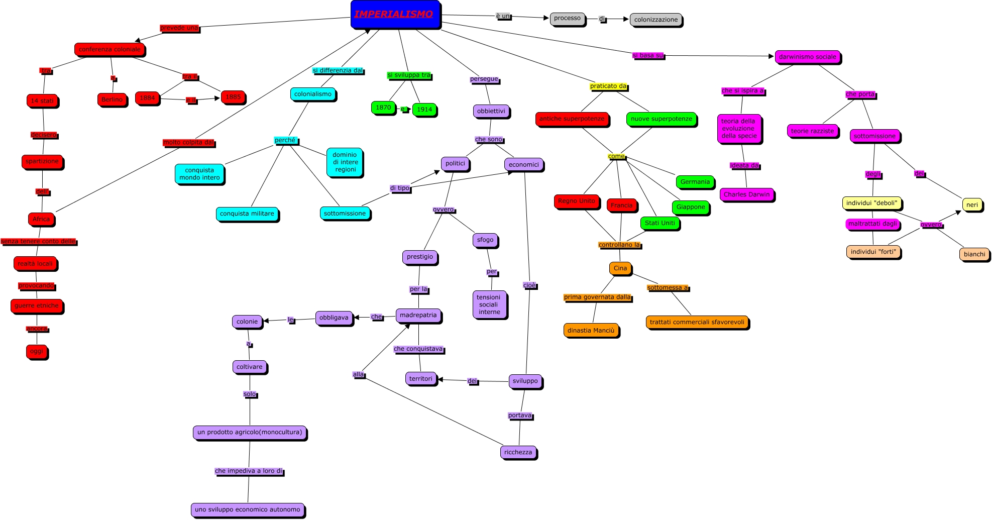Questa Cmap, creata con IHMC CmapTools, contiene informazioni relative a: Imperialismo_Facciolati, politici ovvero prestigio, Regno Unito controllano la Cina, conferenza coloniale tra 14 stati, IMPERIALISMO è un processo, Africa senza tenere conto delle realtà locali, coltivare solo un prodotto agricolo(monocultura), Cina prima governata dalla dinastia Manciù, Stati Uniti come Germania, Francia come Regno Unito, nuove superpotenze come Germania, antiche superpotenze come Regno Unito, Giappone come Germania, Africa molto colpita dal IMPERIALISMO, antiche superpotenze come Germania, realtà locali provocando guerre etniche, Cina sottomessa a trattati commerciali sfavorevoli, un prodotto agricolo(monocultura) che impediva a loro di uno sviluppo economico autonomo, Stati Uniti come Regno Unito, madrepatria che obbligava, individui "forti" ovvero neri