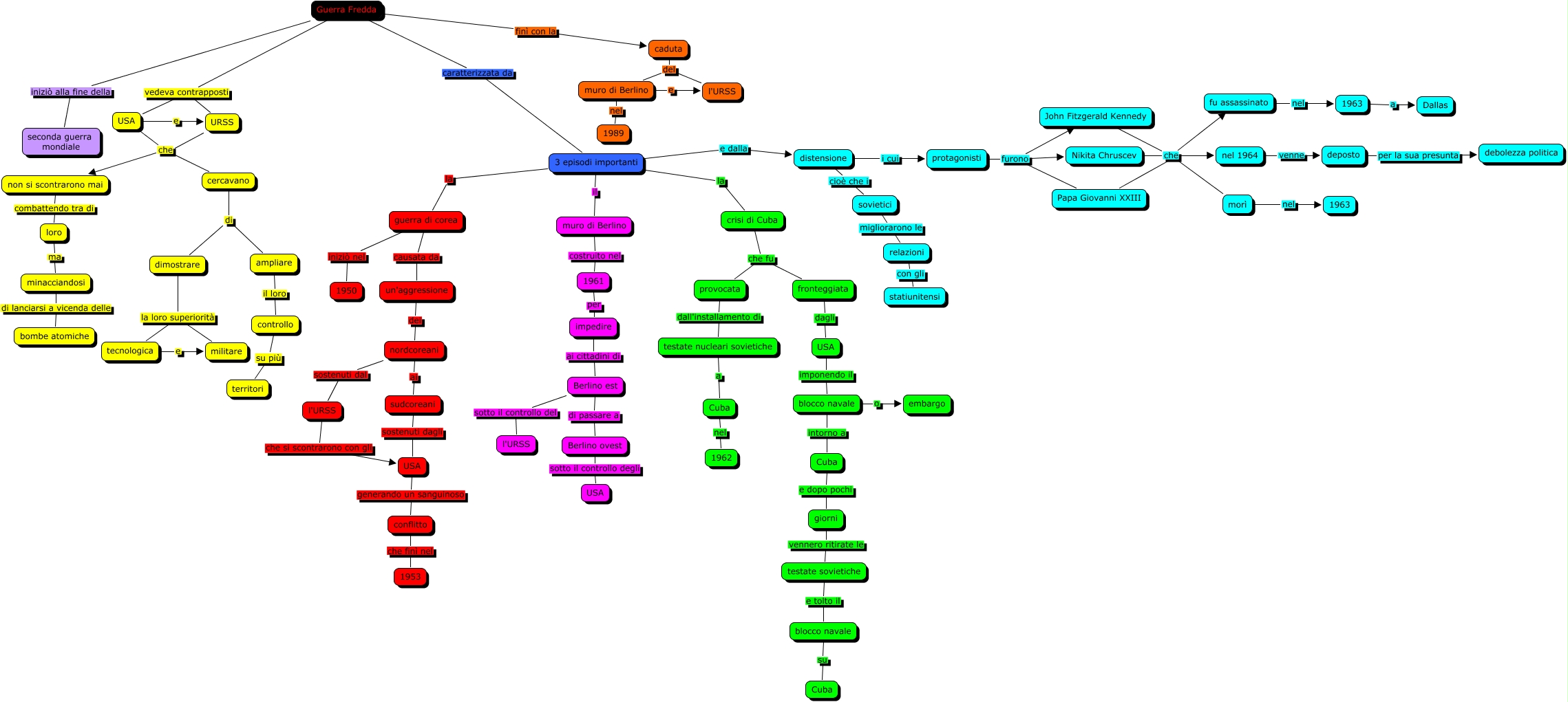 Questa Cmap, creata con IHMC CmapTools, contiene informazioni relative a: Guerra_Fredda_Benvenuti, 3 episodi importanti e dalla distensione, Guerra Fredda caratterizzata da 3 episodi importanti, minacciandosi di lanciarsi a vicenda delle bombe atomiche, Berlino est di passare a Berlino ovest, Guerra Fredda vedeva contrapposti USA, Papa Giovanni XXIII che nel 1964, URSS che non si scontrarono mai, sovietici migliorarono le relazioni, 1963 a Dallas, Berlino est sotto il controllo del l'URSS, dimostrare la loro superiorità militare, ampliare il loro controllo, protagonisti furono Nikita Chruscev, 1961 per impedire, fronteggiata dagli USA, Guerra Fredda iniziò alla fine della seconda guerra mondiale, USA e URSS, Guerra Fredda vedeva contrapposti URSS, Nikita Chruscev che nel 1964, blocco navale o embargo