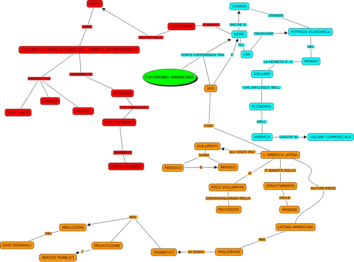 Questa Cmap, creata con IHMC CmapTools, contiene informazioni relative a: economia_america_daddato, L' AMERICA LATINA ALCUNI PAESI LATINO-AMERICANI, NORD ANCHE IL CANADA, IMPORTANTE E' MOLTO NORD, SUD E NORD, USA MAGGIORE POTENZA ECONOMICA, LATINO-AMERICANI PER MIGLIORARE, AMERICA GRAZIE AL VALORE COMMERCIALE, POTENZA ECONOMICA DEL MONDO, CANADA GRANDE POTENZA ECONOMICA, ACCORDO DI LIBERO SCAMBIO DELL' AMERICA SETTENTRIONALE FIRMATO DA CANADA, INDEBITATI PER PRIVATIZZARE, ACCORDO CHE ABOLISCE I DAZI DOGANALI, MIGLIORARE SI SONO INDEBITATI, ABOLIZIONE DEI DAZI DOGANALI, IMPORTANTE GRAZIE ALLA NAFTA, SVILUPPATI SONO MESSICO, PRIVATIZZARE I SERVIZI PUBBLICI, L' AMERICA LATINA E' POCO SVILUPPATA, DOLLARO CHE INFLUISCE NELL' ECONOMIA, ECONOMIA DELL' AMERICA