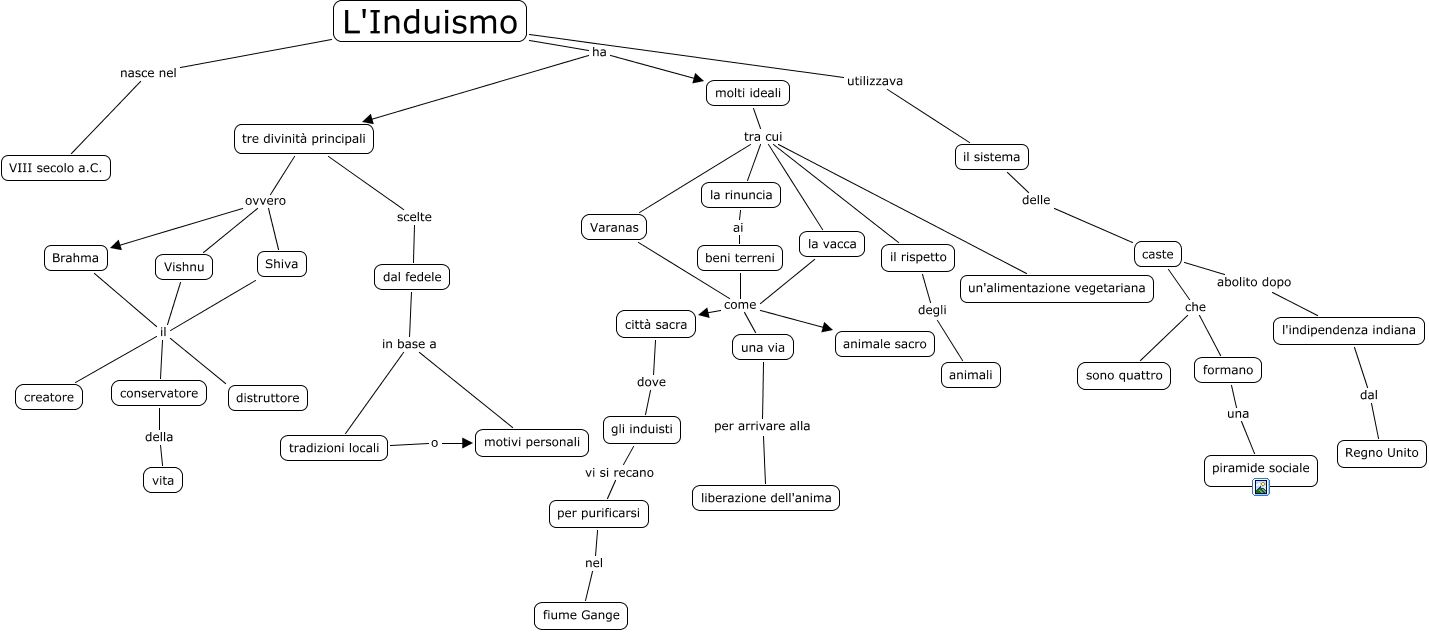 Questa Cmap, creata con IHMC CmapTools, contiene informazioni relative a: _L'Induismo_, Brahma il distruttore, molti ideali tra cui Varanas, molti ideali tra cui la rinuncia, L'Induismo nasce nel VIII secolo a.C., tradizioni locali o motivi personali, per purificarsi nel fiume Gange, molti ideali tra cui il rispetto, tre divinità principali ovvero Brahma, tre divinità principali ovvero Vishnu, molti ideali tra cui la vacca, L'Induismo ha tre divinità principali, conservatore della vita, l'indipendenza indiana dal Regno Unito, tre divinità principali scelte dal fedele, tre divinità principali ovvero Shiva, caste abolito dopo l'indipendenza indiana, una via per arrivare alla liberazione dell'anima, città sacra dove gli induisti, L'Induismo utilizzava il sistema, caste che sono quattro