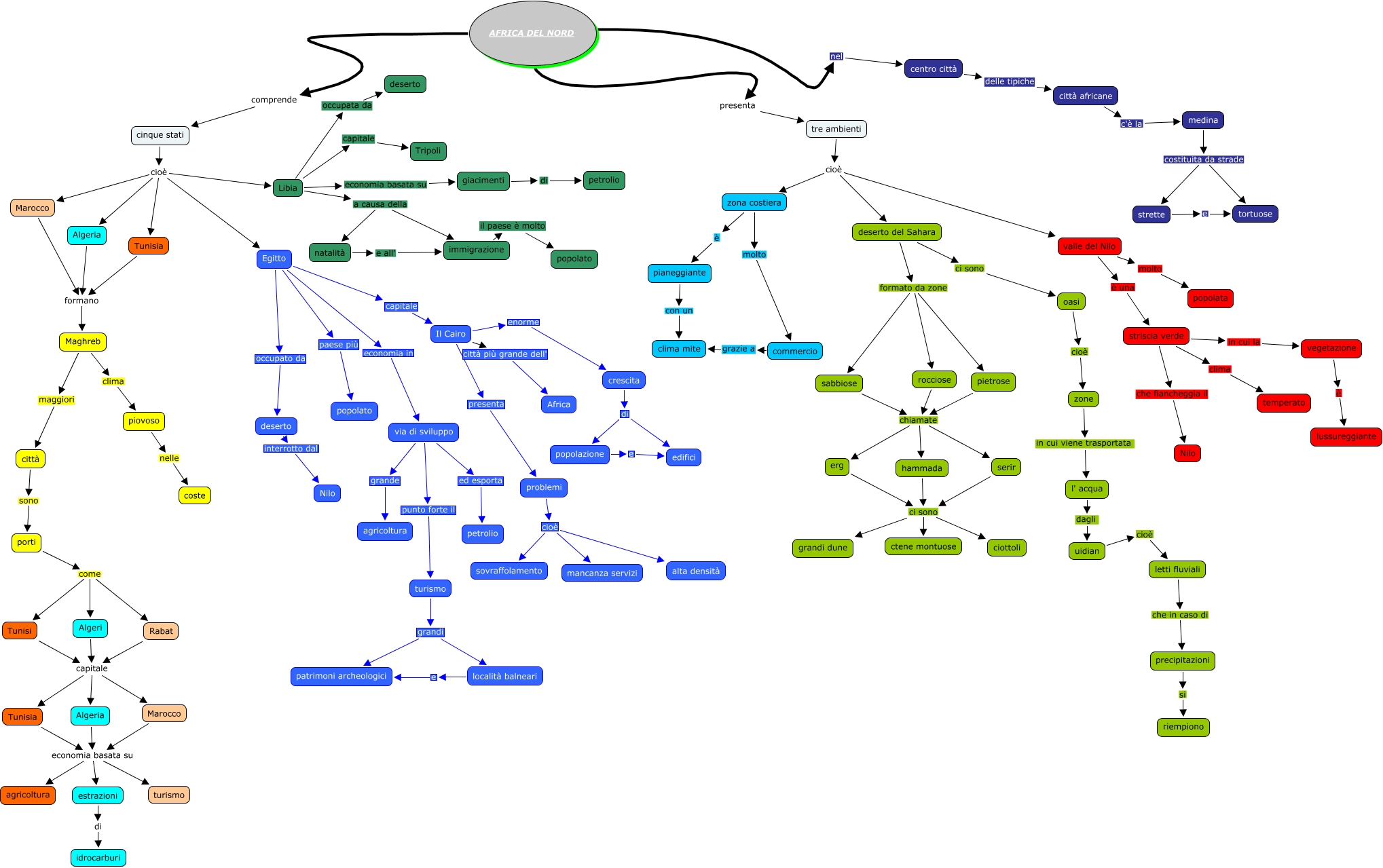 Questa Cmap, creata con IHMC CmapTools, contiene informazioni relative a: africa_nord_daddato, Tunisia economia basata su estrazioni, porti come Tunisi, cinque stati cioè Tunisia, medina costituita da strade strette, zona costiera molto commercio, Tunisi capitale Tunisia, serir ci sono ciottoli, Egitto occupato da deserto, tre ambienti cioè zona costiera, Maghreb clima piovoso, crescita di popolazione, Libia capitale Tripoli, problemi cioè sovraffolamento, Tunisia formano Maghreb, Marocco economia basata su estrazioni, pietrose chiamate erg, località balneari e patrimoni archeologici, pietrose chiamate serir, deserto del Sahara ci sono oasi, Il Cairo città più grande dell' Africa