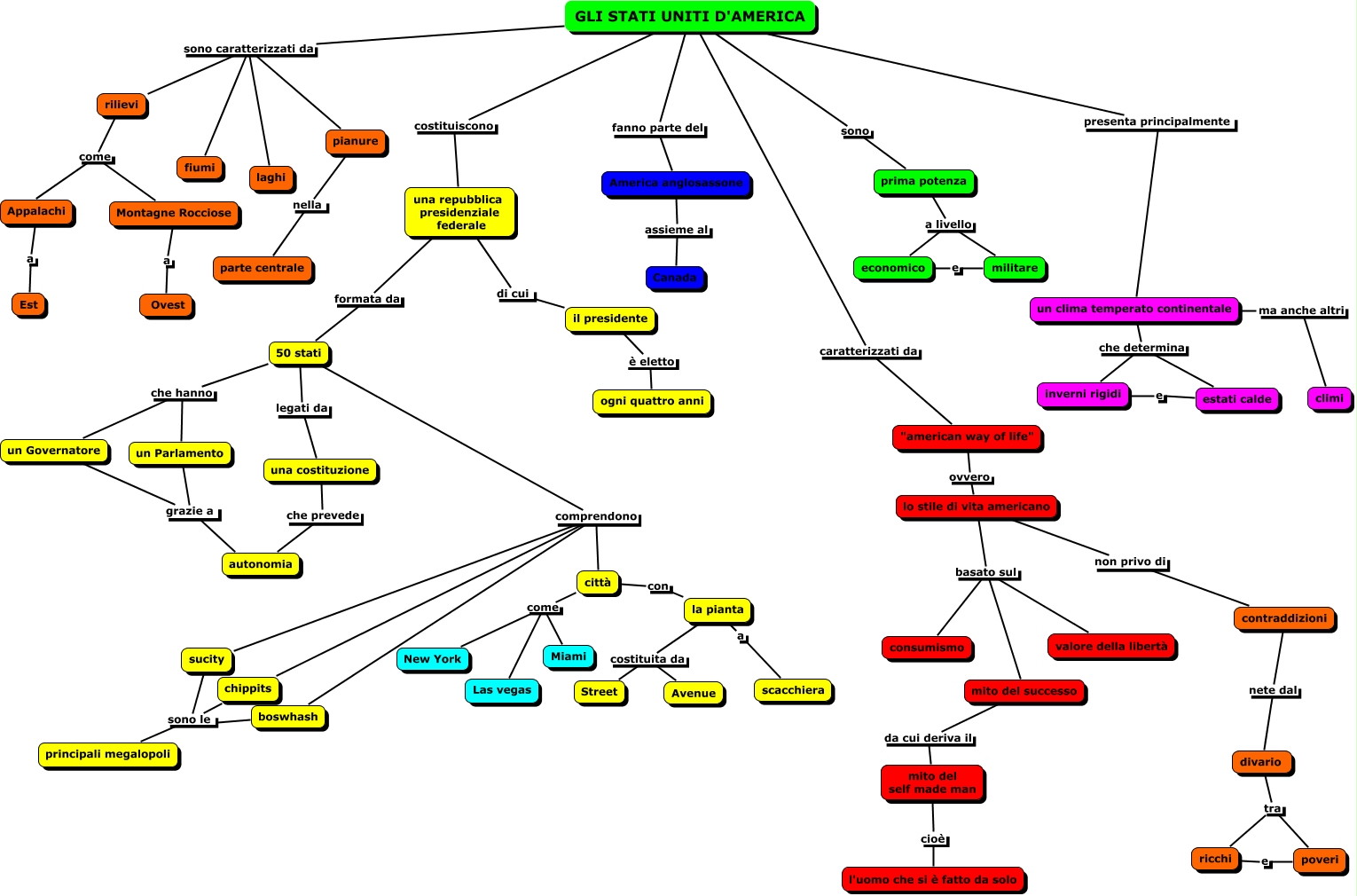 Questa Cmap, creata con IHMC CmapTools, contiene informazioni relative a: Stati uniti d'America_rizzo, un clima temperato continentale ma anche altri climi, lo stile di vita americano non privo di contraddizioni, 50 stati che hanno un Governatore, America anglosassone assieme al Canada, una repubblica presidenziale federale di cui il presidente, una costituzione che prevede autonomia, il presidente è eletto ogni quattro anni, ricchi e poveri, "american way of life" ovvero lo stile di vita americano, prima potenza a livello economico, la pianta a scacchiera, 50 stati comprendono città, città come New York, rilievi come Appalachi, GLI STATI UNITI D'AMERICA sono caratterizzati da laghi, 50 stati legati da una costituzione, GLI STATI UNITI D'AMERICA caratterizzati da "american way of life", rilievi come Montagne Rocciose, GLI STATI UNITI D'AMERICA presenta principalmente un clima temperato continentale, un Parlamento grazie a autonomia