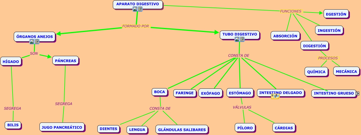 Este Cmap, tiene información relacionada con: APARATO DIGESTIVO 2, APARATO DIGESTIVO FUNCIONES EGESTIÓN, BOCA CONSTA DE DIENTES, TUBO DIGESTIVO CONSTA DE BOCA, ÓRGANOS ANEJOS SON PÁNCREAS, DIGESTIÓN PROCESOS MECÁNICA, TUBO DIGESTIVO CONSTA DE EXÓFAGO, APARATO DIGESTIVO FORMADO POR ÓRGANOS ANEJOS, HÍGADO SEGREGA BILIS, TUBO DIGESTIVO CONSTA DE FARINGE, BOCA CONSTA DE LENGUA, ÓRGANOS ANEJOS SON HÍGADO, APARATO DIGESTIVO FUNCIONES INGESTIÓN, PÁNCREAS SEGREGA JUGO PANCREÁTICO, APARATO DIGESTIVO FORMADO POR TUBO DIGESTIVO, TUBO DIGESTIVO CONSTA DE ESTÓMAGO, BOCA CONSTA DE GLÁNDULAS SALIBARES, DIGESTIÓN PROCESOS QUÍMICA, ESTÓMAGO VÁLVULAS PÍLORO, ESTÓMAGO VÁLVULAS CÁRDIAS, TUBO DIGESTIVO CONSTA DE INTESTINO DELGADO
