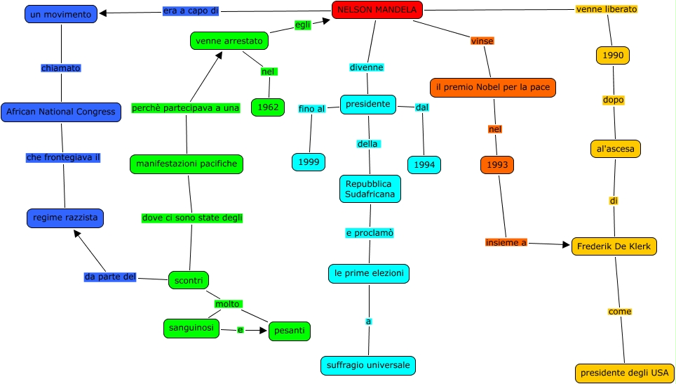 Questa Cmap, creata con IHMC CmapTools, contiene informazioni relative a: Nelson Mandela_Marzolo, African National Congress che frontegiava il regime razzista, NELSON MANDELA divenne presidente, NELSON MANDELA era a capo di un movimento, venne arrestato nel 1962, Frederik De Klerk come presidente degli USA, scontri da parte del regime razzista, presidente fino al 1999, scontri molto pesanti, al'ascesa di Frederik De Klerk, il premio Nobel per la pace nel 1993, venne arrestato egli NELSON MANDELA, sanguinosi e pesanti, presidente della Repubblica Sudafricana, 1990 dopo al'ascesa, 1993 insieme a Frederik De Klerk, un movimento chiamato African National Congress, presidente dal 1994, scontri molto sanguinosi, manifestazioni pacifiche dove ci sono state degli scontri, NELSON MANDELA vinse il premio Nobel per la pace