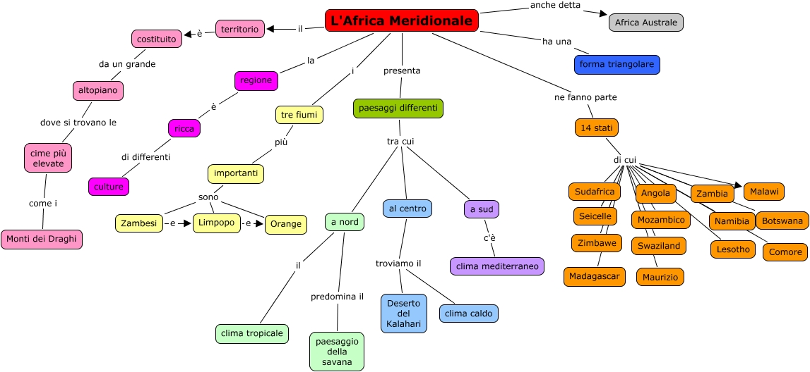 Questa Cmap, creata con IHMC CmapTools, contiene informazioni relative a: Africa_Meridionale_Panarello, cime più elevate come i Monti dei Draghi, L'Africa Meridionale la regione, L'Africa Meridionale ne fanno parte 14 stati, 14 stati di cui Sudafrica, ricca di differenti culture, tre fiumi più importanti, costituito da un grande altopiano, L'Africa Meridionale i tre fiumi, 14 stati di cui Botswana, 14 stati di cui Seicelle, 14 stati di cui Comore, 14 stati di cui Namibia, L'Africa Meridionale presenta paesaggi differenti, a nord predomina il paesaggio della savana, 14 stati di cui Lesotho, paesaggi differenti tra cui a nord, Zambesi e Limpopo, 14 stati di cui Mozambico, paesaggi differenti tra cui al centro, 14 stati di cui Zambia