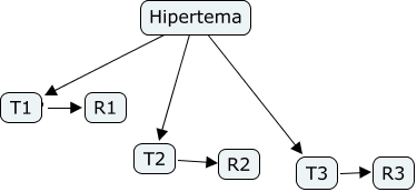 Este Cmap, tiene información relacionada con: Progresión temas derivados, T1 ???? R1, Hipertema ???? T1, Hipertema ???? T2, T2 ???? R2, T3 ???? R3, Hipertema ???? T3