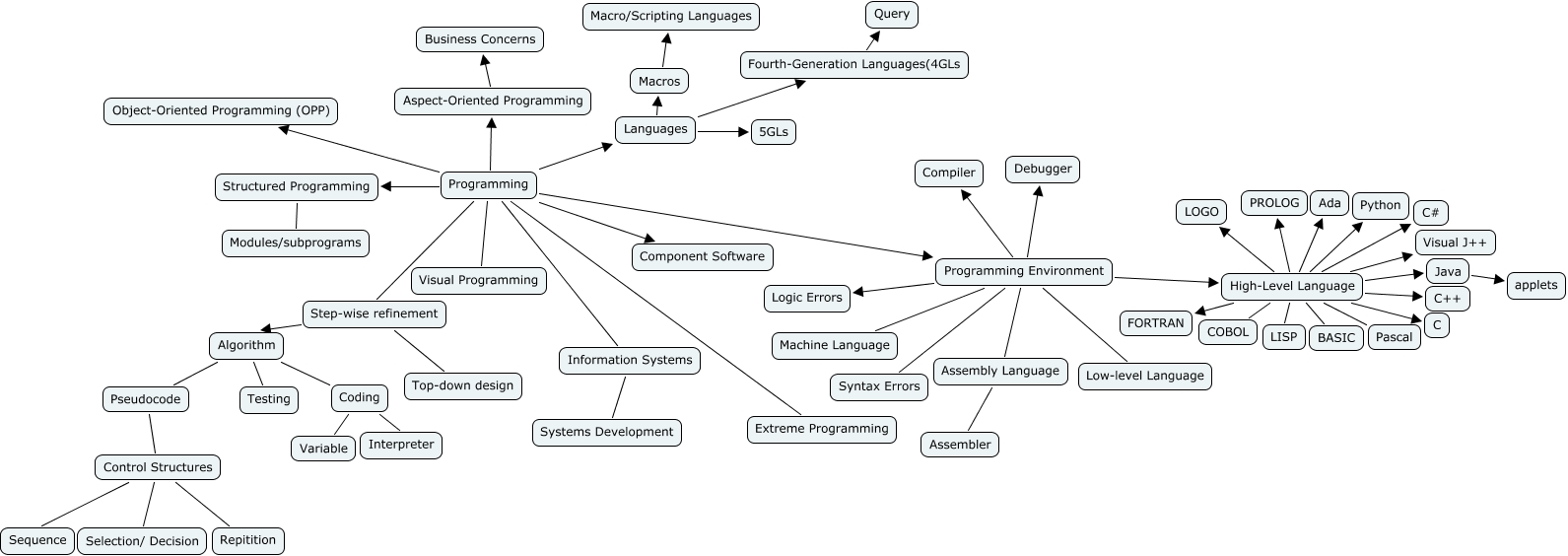 This Concept Map, created with IHMC CmapTools, has information related to: ALEXANDER, High-Level Language Visual J++, High-Level Language Pascal, Languages Fourth-Generation Languages(4GLs, Programming Environment Debugger, High-Level Language C++, Programming Environment Machine Language, Programming Environment Assembly Language, Languages Macros, Programming Environment High-Level Language, Assembly Language Assembler, Programming Information Systems, High-Level Language PROLOG, Programming Environment Compiler, Programming Languages, Programming Component Software, High-Level Language Ada, Programming Environment Low-level Language, High-Level Language LISP, Programming Extreme Programming, Algorithm Coding