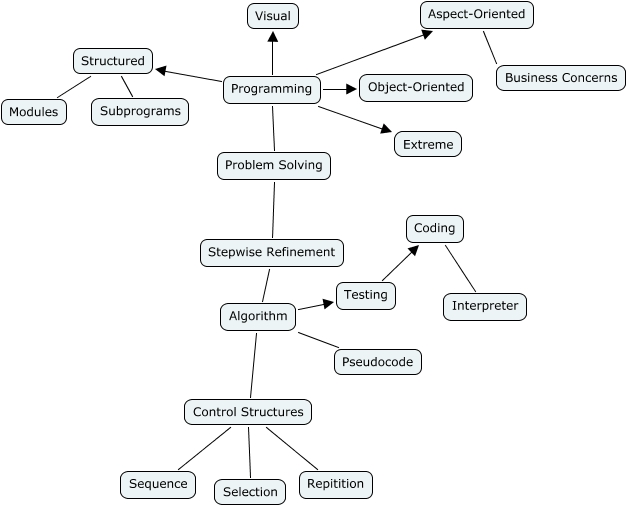 This Concept Map, created with IHMC CmapTools, has information related to: MARILYNN, Programming Visual, Algorithm Pseudocode, Control Structures Repitition, Testing Coding, Algorithm Testing, Programming Problem Solving, Stepwise Refinement Algorithm, Programming Aspect-Oriented, Control Structures Sequence, Programming Extreme, Problem Solving Stepwise Refinement, Coding Interpreter, Structured Subprograms, Programming Object-Oriented, Structured Modules, Programming Structured, Algorithm Control Structures, Aspect-Oriented Business Concerns, Control Structures Selection