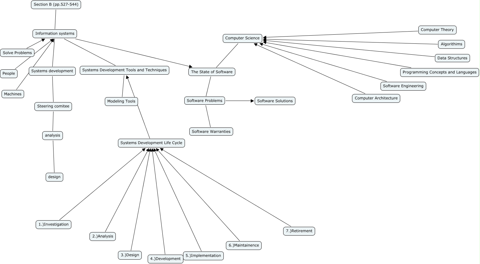 This Concept Map, created with IHMC CmapTools, has information related to: SERGE, analysis design, Systems Development Tools and Techniques Modeling Tools, Data Structures Computer Science, Programming Concepts and Languages Computer Science, Software Problems Software Warranties, Solve Problems Information systems, Computer Architecture Computer Science, 1.)Investigation Systems Development Life Cycle, People Information systems, 6.)Maintainence Systems Development Life Cycle, Systems Development Life Cycle Systems Development Tools and Techniques, Section B (pp.527-544) Information systems, The State of Software Software Problems, 4.)Development Systems Development Life Cycle, Machines Information systems, 5.)Implementation Systems Development Life Cycle, Software Problems Software Solutions, 3.)Design Systems Development Life Cycle, Information systems Systems Development Tools and Techniques, Information systems Systems development