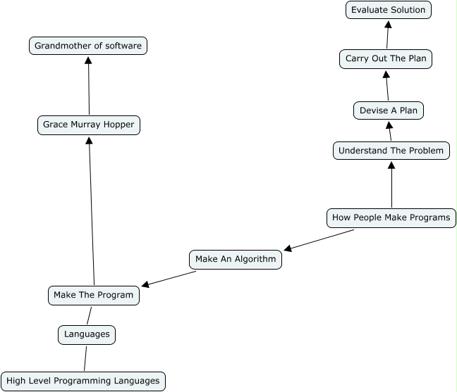 This Concept Map, created with IHMC CmapTools, has information related to: SWATI, How People Make Programs Make An Algorithm, Languages High Level Programming Languages, Grace Murray Hopper Grandmother of software, Make The Program Grace Murray Hopper, Make The Program Languages, How People Make Programs Understand The Problem, Make An Algorithm Make The Program, Devise A Plan Carry Out The Plan, Understand The Problem Devise A Plan, Carry Out The Plan Evaluate Solution