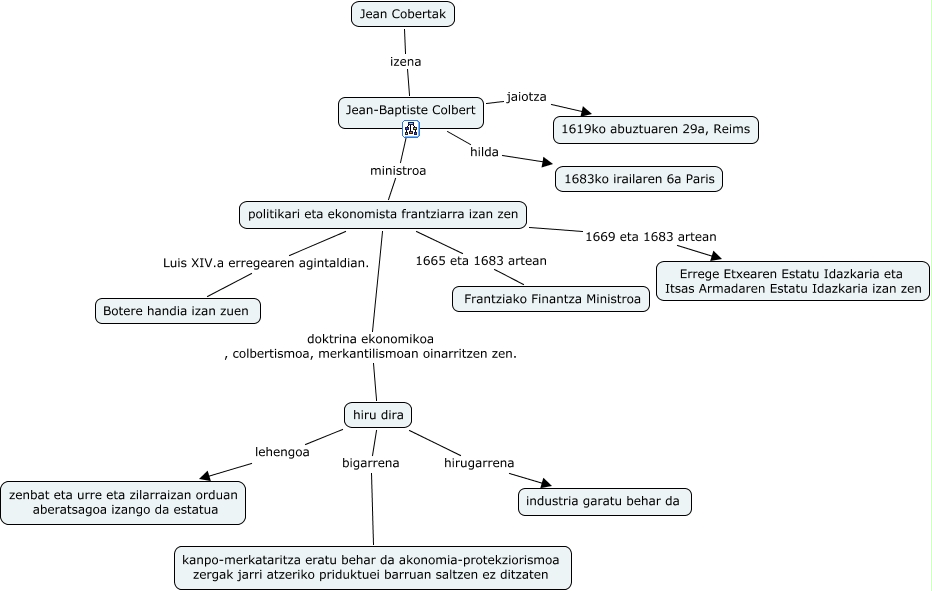 Este Cmap, tiene información relacionada con: jean colbertak, Jean-Baptiste Colbert hilda 1683ko irailaren 6a Paris, politikari eta ekonomista frantziarra izan zen Luis XIV.a erregearen agintaldian. Botere handia izan zuen, hiru dira hirugarrena industria garatu behar da, hiru dira lehengoa zenbat eta urre eta zilarraizan orduan aberatsagoa izango da estatua, politikari eta ekonomista frantziarra izan zen 1669 eta 1683 artean Errege Etxearen Estatu Idazkaria eta Itsas Armadaren Estatu Idazkaria izan zen, Jean Cobertak izena Jean-Baptiste Colbert, politikari eta ekonomista frantziarra izan zen doktrina ekonomikoa , colbertismoa, merkantilismoan oinarritzen zen. hiru dira, politikari eta ekonomista frantziarra izan zen 1665 eta 1683 artean Frantziako Finantza Ministroa, Jean-Baptiste Colbert jaiotza 1619ko abuztuaren 29a, Reims, Jean-Baptiste Colbert ministroa politikari eta ekonomista frantziarra izan zen, hiru dira bigarrena kanpo-merkataritza eratu behar da akonomia-protekziorismoa zergak jarri atzeriko priduktuei barruan saltzen ez ditzaten