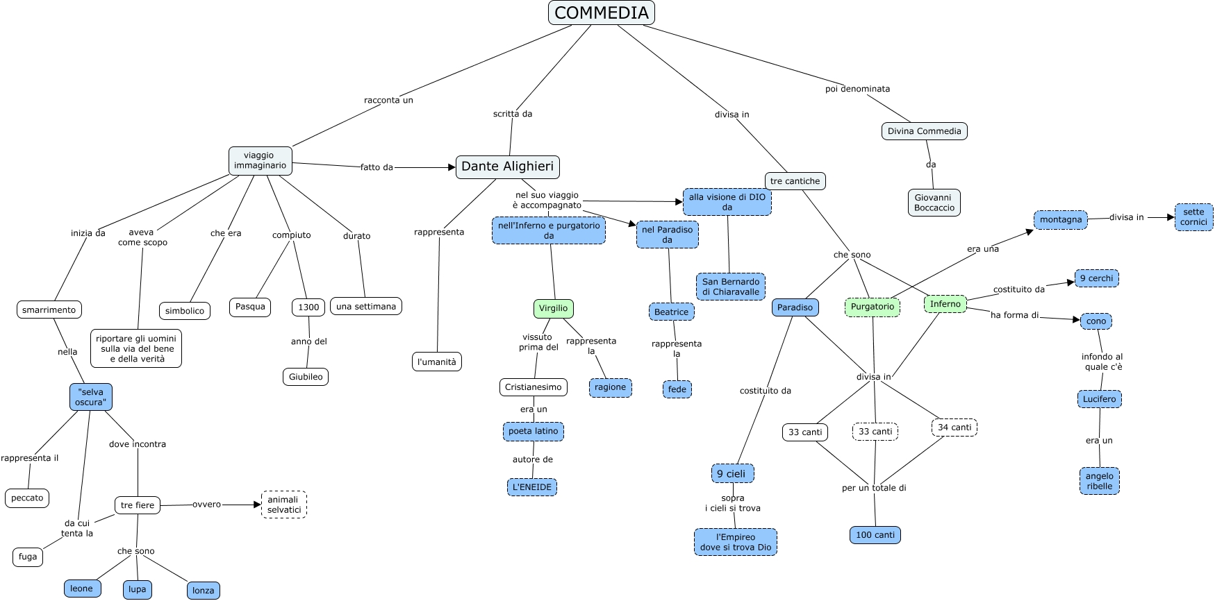 Questa Cmap, creata con IHMC CmapTools, contiene informazioni relative a: commedia, viaggio immaginario compiuto Pasqua, 9 cieli sopra i cieli si trova l'Empireo dove si trova Dio, Dante Alighieri nel suo viaggio è accompagnato alla visione di DIO da, Virgilio vissuto prima del Cristianesimo, Divina Commedia da Giovanni Boccaccio, Inferno divisa in 33 canti, Dante Alighieri nel suo viaggio è accompagnato nell'Inferno e purgatorio da, cono infondo al quale c'è Lucifero, nel Paradiso da ???? Beatrice, viaggio immaginario compiuto 1300, viaggio immaginario fatto da Dante Alighieri, Inferno divisa in 34 canti, viaggio immaginario che era simbolico, tre fiere che sono lonza, tre fiere ovvero animali selvatici, Cristianesimo era un poeta latino, Paradiso costituito da 9 cieli, Beatrice rappresenta la fede, Lucifero era un angelo ribelle, tre cantiche che sono Purgatorio