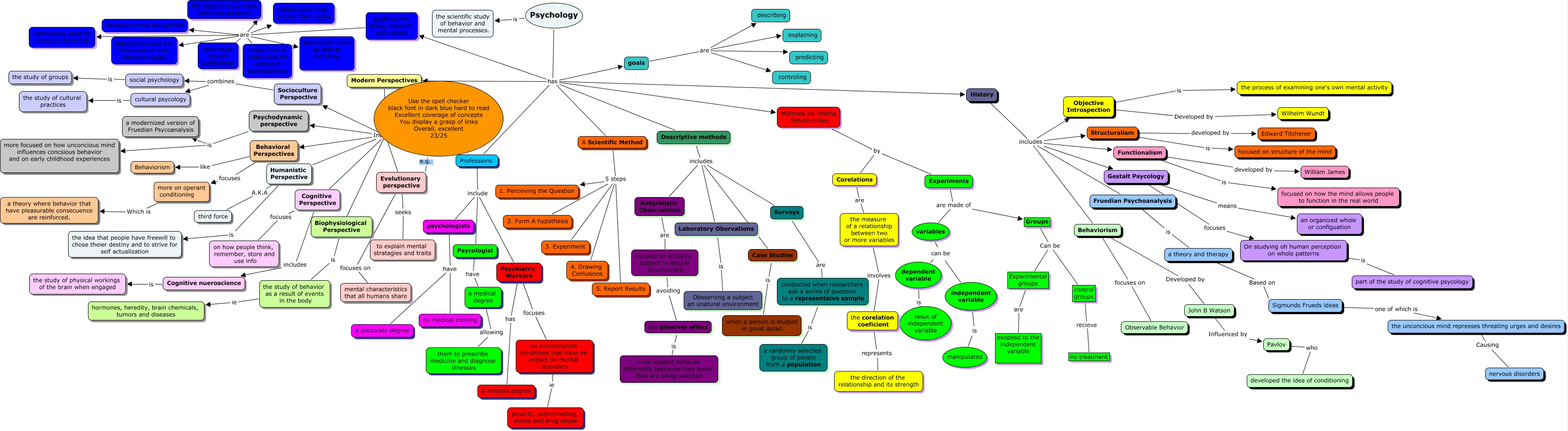 This Concept Map, created with IHMC CmapTools, has information related to: Catherine Bower Ch1 23, Modern Perspectives Includes Evelutionary perspective, Biophysiological Perspective is the study of behavior as a result of events in the body, Professions include Psycologist, Surveys are conducted when researchers ask a series of question to a representaive sample, dependent variable is resut of independent variable, Psychodynamic perspective is a modernized version of Fruedian Psycoanalysis, Descriptive methods includes Case Studies, cultural psycology is the study of cultural practices, Professions include Psychiatric Workers, a medical degree allowing them to prescribe medicine and diagnose illnesses, Naturalistic Observations are focused on studying subject in natural environment, Gestalt Psycology focuses On studying oh human perception on whole patterns, Psychology has Descriptive methods, psychologists have a doctorate degree, Psycologist have a medical degree, focused on studying subject in natural environment avoiding the observer effect, Socioculture Perspective combines social psychology, Psychology is the scientific study of behavior and mental processes., Psychology has Professions, Cognitive nueroscience is the study of physical workings of the brain when engaged