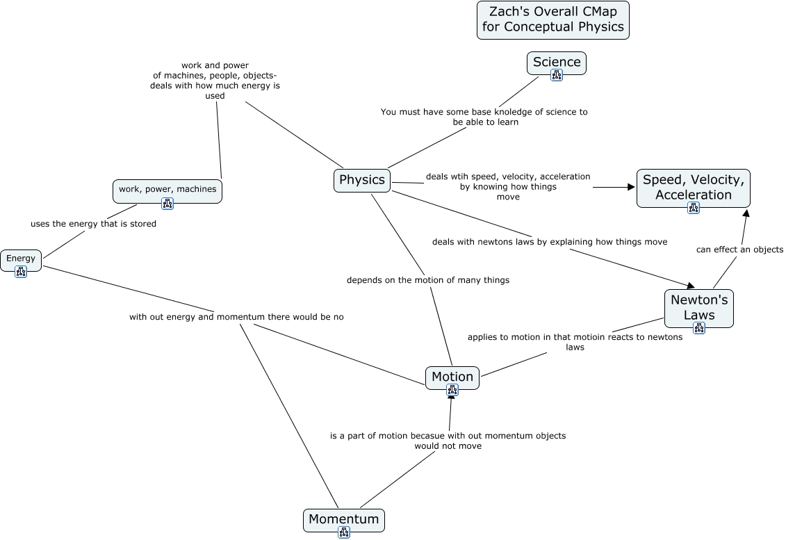 This Concept Map, created with IHMC CmapTools, has information related to: Martin_Zach All-Unit Cmap, work, power, machines uses the energy that is stored Energy, Physics deals with newtons laws by explaining how things move Newton's Laws, Physics depends on the motion of many things Motion, Momentum is a part of motion becasue with out momentum objects would not move Motion, Momentum with out energy and momentum there would be no Motion, Energy with out energy and momentum there would be no Motion, Science You must have some base knoledge of science to be able to learn Physics, Physics work and power of machines, people, objects- deals with how much energy is used work, power, machines, Physics deals wtih speed, velocity, acceleration by knowing how things move Speed, Velocity, Acceleration, Newton's Laws can effect an objects Speed, Velocity, Acceleration, Newton's Laws applies to motion in that motioin reacts to newtons laws Motion