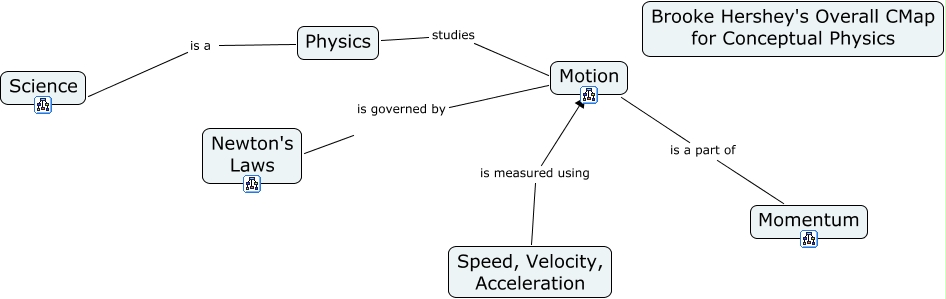 This Concept Map, created with IHMC CmapTools, has information related to: Hershey_Brooke All-Unit Cmap, Motion is a part of Momentum, Physics studies Motion, Motion is governed by Newton's Laws, Speed, Velocity, Acceleration is measured using Motion, Physics is a Science