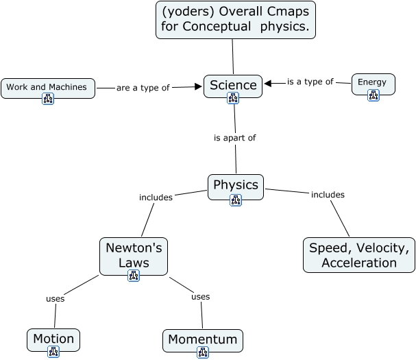 This Concept Map, created with IHMC CmapTools, has information related to: yoder_cara All-Units Cmap, Energy is a type of Science, Science is apart of Physics, Newton's Laws uses Momentum, Work and Machines are a type of Science, (yoders) Overall Cmaps for Conceptual physics. Science, Physics includes Newton's Laws, Newton's Laws uses Motion, Physics includes Speed, Velocity, Acceleration