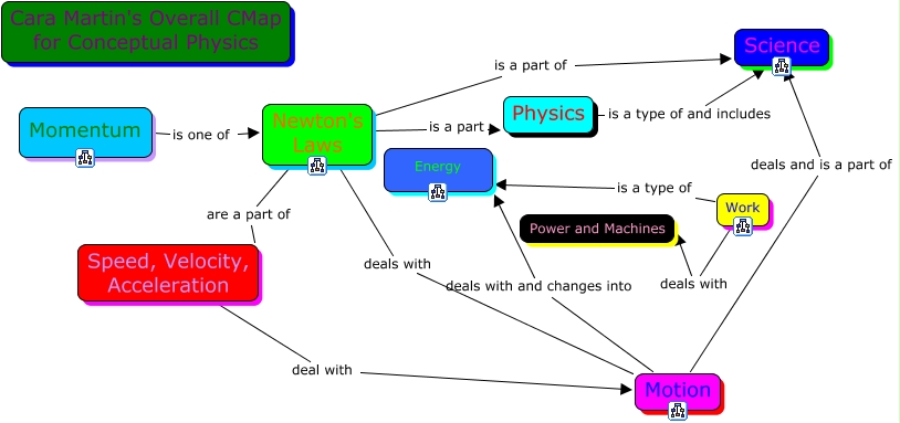 This Concept Map, created with IHMC CmapTools, has information related to: Martin_Cara All Unit Cmap, Newton's Laws is a part of Science, Speed, Velocity, Acceleration deal with Motion, Newton's Laws are a part of Speed, Velocity, Acceleration, Newton's Laws deals with Motion, Physics is a type of and includes Science, Motion deals with and changes into Energy, Work is a type of Energy, Momentum is one of Newton's Laws, Motion deals and is a part of Science, Work deals with Power and Machines, Newton's Laws is a part Physics