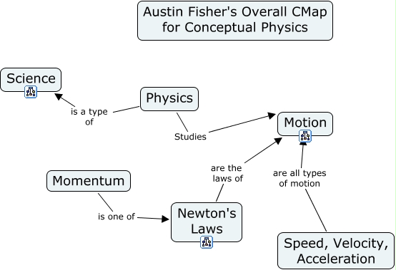 This Concept Map, created with IHMC CmapTools, has information related to: Fisher_Austin All-Unit Cmap, Physics Studies Motion, Speed, Velocity, Acceleration are all types of motion Motion, Momentum is one of Newton's Laws, Newton's Laws are the laws of Motion, Physics is a type of Science