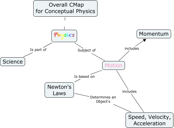 This Concept Map, created with IHMC CmapTools, has information related to: Plank_Macallie All-unit_Cmap, Motion includes Speed, Velocity, Acceleration, Newton's Laws Determines an Object's Speed, Velocity, Acceleration, Motion Is based on Newton's Laws, Motion includes Momentum, Overall CMap for Conceptual Physics Physics, Physics Is part of Science, Physics Subject of Motion