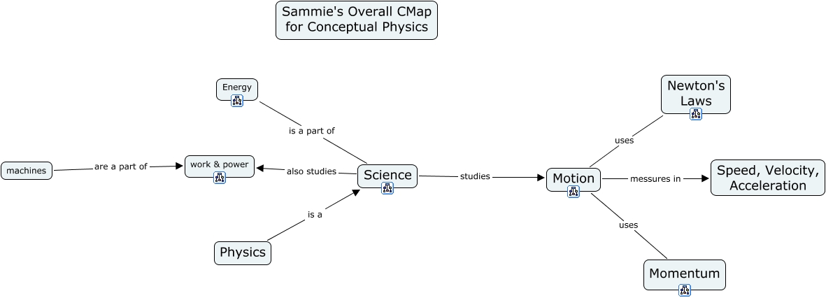 This Concept Map, created with IHMC CmapTools, has information related to: Lewis_Sammie_All-Unit_Cmap, Science studies Motion, Motion messures in Speed, Velocity, Acceleration, Motion uses Momentum, Physics is a Science, Energy is a part of Science, Science also studies work & power, machines are a part of work & power, Newton's Laws uses Motion