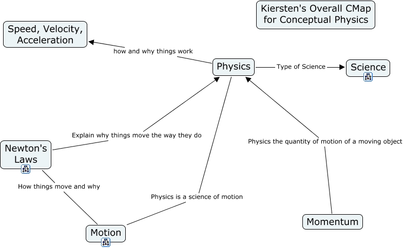 This Concept Map, created with IHMC CmapTools, has information related to: Keen_Kiersten_All_Unit_Cmap, Physics Physics is a science of motion Motion, Momentum Physics the quantity of motion of a moving object Physics, Physics how and why things work Speed, Velocity, Acceleration, Physics Type of Science Science, Newton's Laws Explain why things move the way they do Physics, Newton's Laws How things move and why Motion