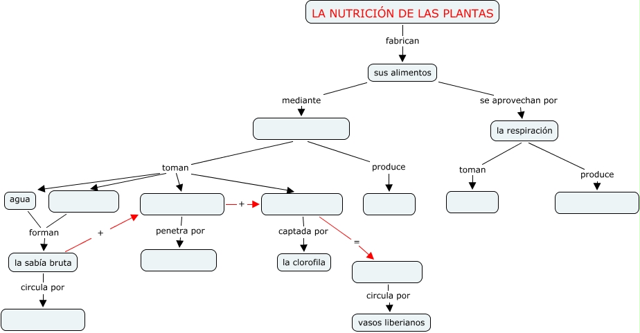 Este Cmap, tiene información relacionada con: La nutrición de las plantas S, sus alimentos mediante, produce, agua forman la sabía bruta, forman la sabía bruta, toman, la respiración toman, la sabía bruta +, =, LA NUTRICIÓN DE LAS PLANTAS fabrican sus alimentos, penetra por, toman agua, sus alimentos se aprovechan por la respiración, toman, la sabía bruta circula por, +, captada por la clorofila, la respiración produce, toman, circula por vasos liberianos