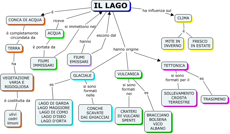 Questa Cmap, creata con IHMC CmapTools, contiene informazioni relative a: LAGO, IL LAGO hanno origine VULCANICA, IL LAGO hanno origine TETTONICA, VULCANICA es BRACCIANO BOLSENA VICO ALBANO, GLACIALE si sono formati nelle CONCHE SCAVATE DAI GHIACCIAI, VULCANICA si sono formati nei CRATERI DI VULCANI SPENTI, IL LAGO riceve ACQUA, TERRA ha VEGETAZIONE VARIA E RIGOGLIOSA, IL LAGO hanno FIUMI EMISSARI, VEGETAZIONE VARIA E RIGOGLIOSA è costituita da ulivi cedri limoni, GLACIALE es LAGO DI GARDA LAGO MAGGIORE LAGO DI COMO LAGO D'ISEO LAGO D'ORTA, FIUMI EMISSARI escono dal IL LAGO, CLIMA è FRESCO IN ESTATE, CLIMA è MITE IN INVERNO, TETTONICA si sono formati per il SOLLEVAMENTO CROSTA TERRESTRE, IL LAGO hanno origine GLACIALE, TETTONICA es TRASIMENO, IL LAGO ha influenza sul CLIMA, IL LAGO è CONCA DI ACQUA, CONCA DI ACQUA è completamente circondata da TERRA, FIUMI IMMISSARI si immettono nel IL LAGO