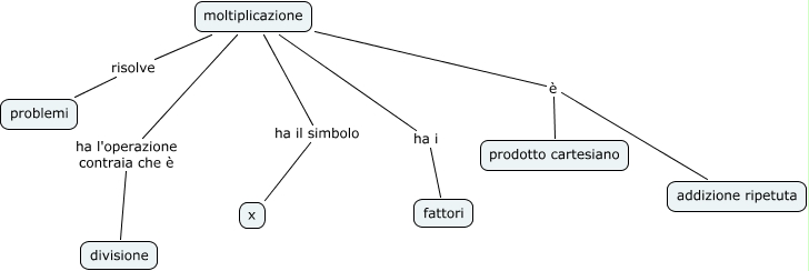 Questa Cmap, creata con IHMC CmapTools, contiene informazioni relative a: moltiplicazione_gabriele, moltiplicazione ha il simbolo x, addizione ripetuta è prodotto cartesiano, divisione ha l'operazione contraia che è moltiplicazione, problemi risolve moltiplicazione, addizione ripetuta è moltiplicazione, moltiplicazione ha i fattori