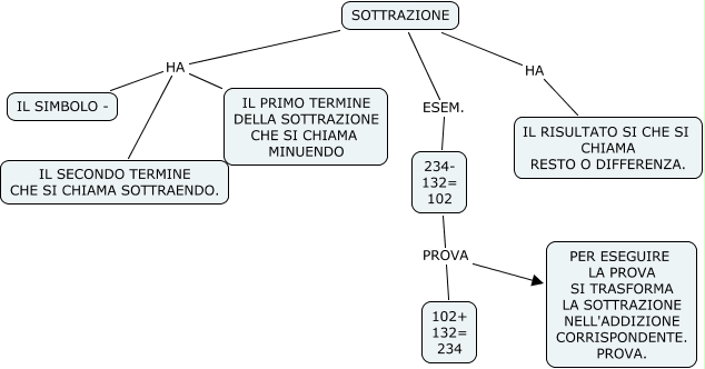 Questa Cmap, creata con IHMC CmapTools, contiene informazioni relative a: SOTTRAZIONE_jennipher, SOTTRAZIONE HA IL SIMBOLO -, SOTTRAZIONE HA IL PRIMO TERMINE DELLA SOTTRAZIONE CHE SI CHIAMA MINUENDO, SOTTRAZIONE HA IL SECONDO TERMINE CHE SI CHIAMA SOTTRAENDO., 234- 132= 102 PROVA 102+ 132= 234, 234- 132= 102 PROVA PER ESEGUIRE LA PROVA SI TRASFORMA LA SOTTRAZIONE NELL'ADDIZIONE CORRISPONDENTE. PROVA., SOTTRAZIONE HA IL RISULTATO SI CHE SI CHIAMA RESTO O DIFFERENZA., SOTTRAZIONE ESEM. 234- 132= 102
