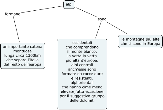 Questa Cmap, creata con IHMC CmapTools, contiene informazioni relative a: alpi_camillo, alpi formano un'importante catena montuosa lunga circa 1300km che separa l'italia dal resto dell'europa, alpi sono occidentali che comprendono il monte bianco, la vetta la vetta più alta d'europa. alpi centrali anch'esse sono formate da rocce dure e resistenti. alpi orientali che hanno cime meno elevate,fatta eccezione per il suggestivo gruppo delle dolomiti, alpi sono le montagne più alte che ci sono in Europa