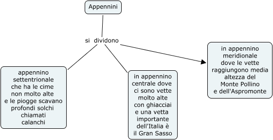Questa Cmap, creata con IHMC CmapTools, contiene informazioni relative a: Appennini jennipher, Appennini si dividono in appennino centrale dove ci sono vette molto alte con ghiacciai e una vetta importante dell'Italia è il Gran Sasso, Appennini si dividono in appennino meridionale dove le vette raggiungono media altezza del Monte Pollino e dell'Aspromonte, Appennini si dividono appennino settentrionale che ha le cime non molto alte e le piogge scavano profondi solchi chiamati calanchi