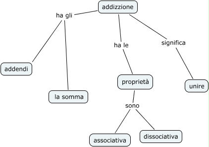 Questa Cmap, creata con IHMC CmapTools, contiene informazioni relative a: addizionegiovanni, addizzione ha gli la somma, addizzione ha le proprietà, addizzione significa unire, proprietà sono associativa, addizzione ha gli addendi, proprietà sono dissociativa