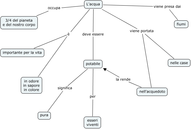 Questa Cmap, creata con IHMC CmapTools, contiene informazioni relative a: L'acqua Dhimitri, L'acqua viene portata nell'acquedoto, potabile significa pura, L'acqua viene portata nelle case, L'acqua è importante per la vita, L'acqua deve essere potabile, potabile per esseri viventi, L'acqua è in odore in sapore in colore, L'acqua occupa 3/4 del pianeta e del nostro corpo, nell'acquedoto la rende potabile, L'acqua viene presa dai fiumi