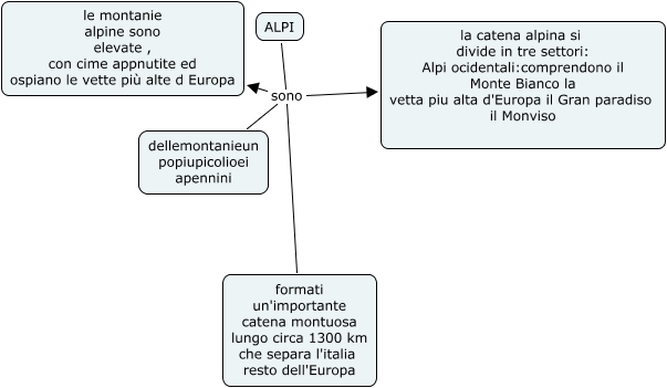 Questa Cmap, creata con IHMC CmapTools, contiene informazioni relative a: alpi hajar, ALPI sono dellemontanieun popiupicolioei apennini, ALPI sono formati un'importante catena montuosa lungo circa 1300 km che separa l'italia resto dell'Europa, ALPI sono la catena alpina si divide in tre settori: Alpi ocidentali:comprendono il Monte Bianco la vetta piu alta d'Europa il Gran paradiso il Monviso, ALPI sono le montanie alpine sono elevate , con cime appnutite ed ospiano le vette più alte d Europa