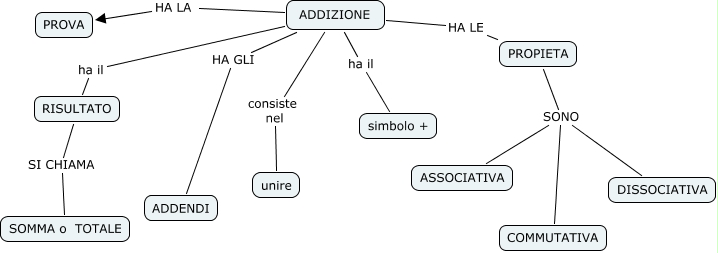 Questa Cmap, creata con IHMC CmapTools, contiene informazioni relative a: ADDIZIONE_francesco, ADDIZIONE HA GLI ADDENDI, PROPIETA SONO DISSOCIATIVA, ADDIZIONE HA LE PROPIETA, ADDIZIONE HA LA PROVA, ADDIZIONE ha il RISULTATO, ADDIZIONE ha il simbolo +, PROPIETA SONO ASSOCIATIVA, RISULTATO SI CHIAMA SOMMA o TOTALE, PROPIETA SONO COMMUTATIVA, ADDIZIONE consiste nel unire