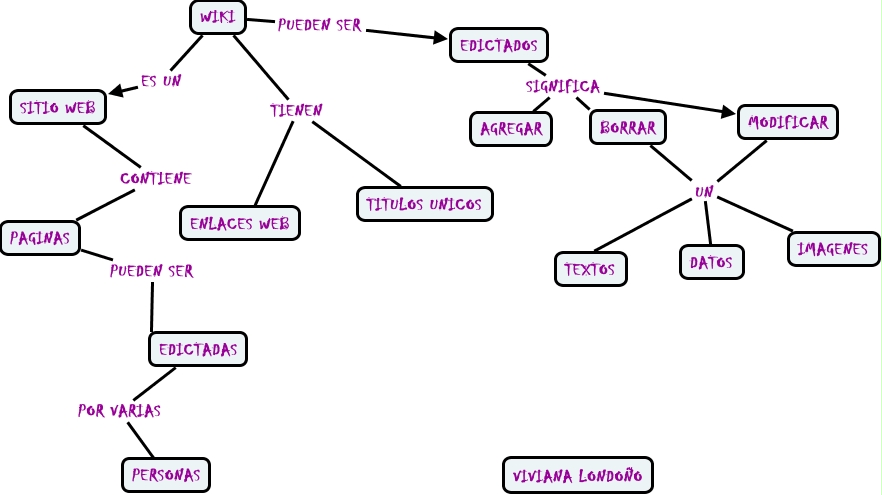 Este Cmap, tiene información relacionada con: WIKI23, MODIFICAR UN TEXTOS, SITIO WEB CONTIENE PAGINAS, MODIFICAR UN DATOS, WIKI ES UN SITIO WEB, EDICTADOS SIGNIFICA AGREGAR, WIKI PUEDEN SER EDICTADOS, EDICTADAS POR VARIAS PERSONAS, PAGINAS PUEDEN SER EDICTADAS, EDICTADOS SIGNIFICA BORRAR, MODIFICAR UN IMAGENES, BORRAR UN DATOS, WIKI TIENEN ENLACES WEB, EDICTADOS SIGNIFICA MODIFICAR, WIKI TIENEN TITULOS UNICOS, BORRAR UN IMAGENES, BORRAR UN TEXTOS