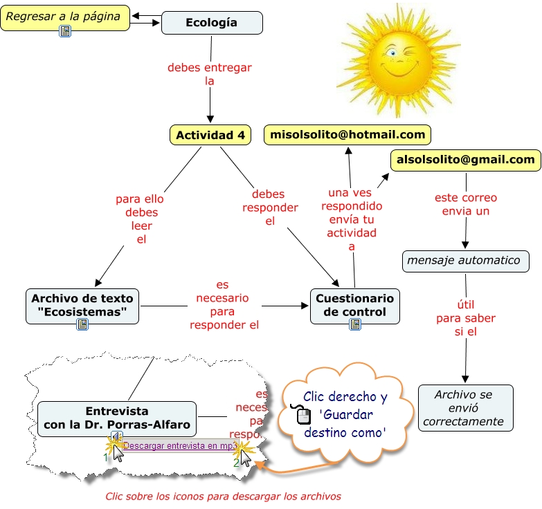 Este Cmap, tiene información relacionada con: ECO_A4_XXYZ, Cuestionario de control una ves respondido envía tu actividad a alsolsolito@gmail.com, Regresar a la página ???? Ecología, Cuestionario de control una ves respondido envía tu actividad a misolsolito@hotmail.com, Ecología ???? Regresar a la página, Actividad 4 debes responder el Cuestionario de control, Actividad 4 para ello debes leer el Archivo de texto "Ecosistemas", mensaje automatico útil para saber si el Archivo se envió correctamente, alsolsolito@gmail.com este correo envia un mensaje automatico, Ecología debes entregar la Actividad 4, Archivo de texto "Ecosistemas" es necesario para responder el Cuestionario de control