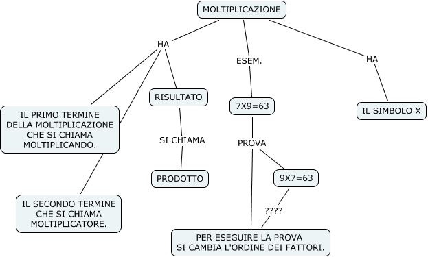 Questa Cmap, creata con IHMC CmapTools, contiene informazioni relative a: MOLTIPLICAZIONE_jennipher, MOLTIPLICAZIONE HA IL PRIMO TERMINE DELLA MOLTIPLICAZIONE CHE SI CHIAMA MOLTIPLICANDO., MOLTIPLICAZIONE ESEM. 7X9=63, 7X9=63 PROVA PER ESEGUIRE LA PROVA SI CAMBIA L'ORDINE DEI FATTORI., 7X9=63 PROVA 9X7=63, MOLTIPLICAZIONE HA IL SECONDO TERMINE CHE SI CHIAMA MOLTIPLICATORE., RISULTATO SI CHIAMA PRODOTTO, MOLTIPLICAZIONE HA RISULTATO, MOLTIPLICAZIONE HA IL SIMBOLO X, 9X7=63 ???? PER ESEGUIRE LA PROVA SI CAMBIA L'ORDINE DEI FATTORI.