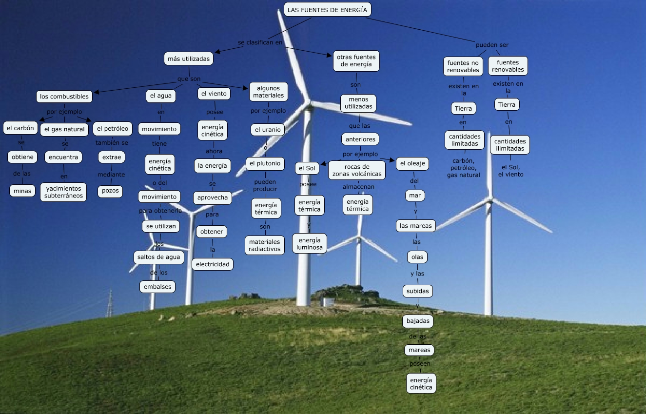 Este Cmap, tiene información relacionada con: LAS FUENTES DE ENERGÍA (Marina y Lucía), extrae mediante pozos, el carbón se obtiene, saltos de agua de los embalses, se utilizan los saltos de agua, LAS FUENTES DE ENERGÍA se clasifican en más utilizadas, fuentes no renovables existen en la Tierra, menos utilizadas que las anteriores, aprovecha para obtener, más utilizadas que son algunos materiales, energía cinética ahora la energía, LAS FUENTES DE ENERGÍA se clasifican en otras fuentes de energía, el gas natural se encuentra, mareas poseen energía cinética, el uranio o el plutonio, otras fuentes de energía son menos utilizadas, el plutonio pueden producir energía térmica, encuentra en yacimientos subterráneos, obtener la electricidad, el oleaje del mar, olas y las subidas
