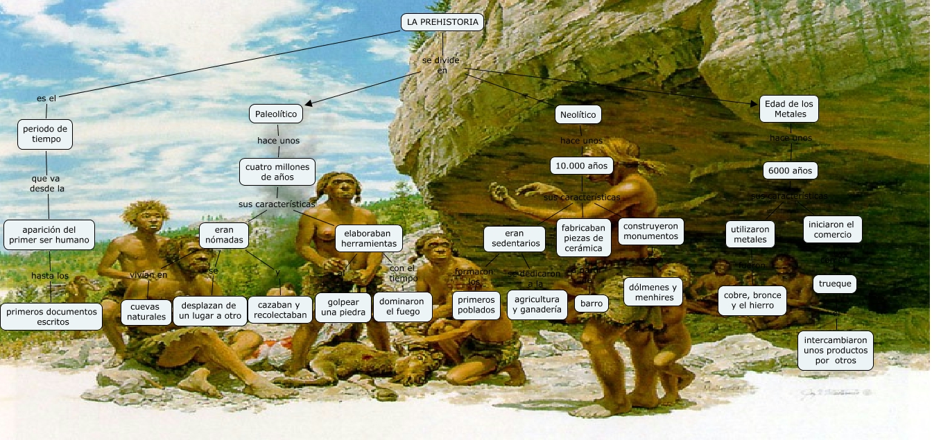 Este Cmap, tiene información relacionada con: LA PREHISTORIA (Ana y Rubén), iniciaron el comercio con el trueque, 6000 años sus características utilizaron metales, 6000 años sus características iniciaron el comercio, elaboraban herramientas con el tiempo dominaron el fuego, fabricaban piezas de cerámica a partir de barro, eran nómadas vivían en cuevas naturales, LA PREHISTORIA es el periodo de tiempo, LA PREHISTORIA se divide en Edad de los Metales, construyeron monumentos como dólmenes y menhires, aparición del primer ser humano hasta los primeros documentos escritos, elaboraban herramientas al golpear una piedra, 10.000 años sus características fabricaban piezas de cerámica, LA PREHISTORIA se divide en Neolítico, trueque el intercambiaron unos productos por otros, eran sedentarios se dedicaron a la agricultura y ganadería, Neolítico hace unos 10.000 años, 10.000 años sus características construyeron monumentos, Paleolítico hace unos cuatro millones de años, cuatro millones de años sus características elaboraban herramientas, eran nómadas y cazaban y recolectaban