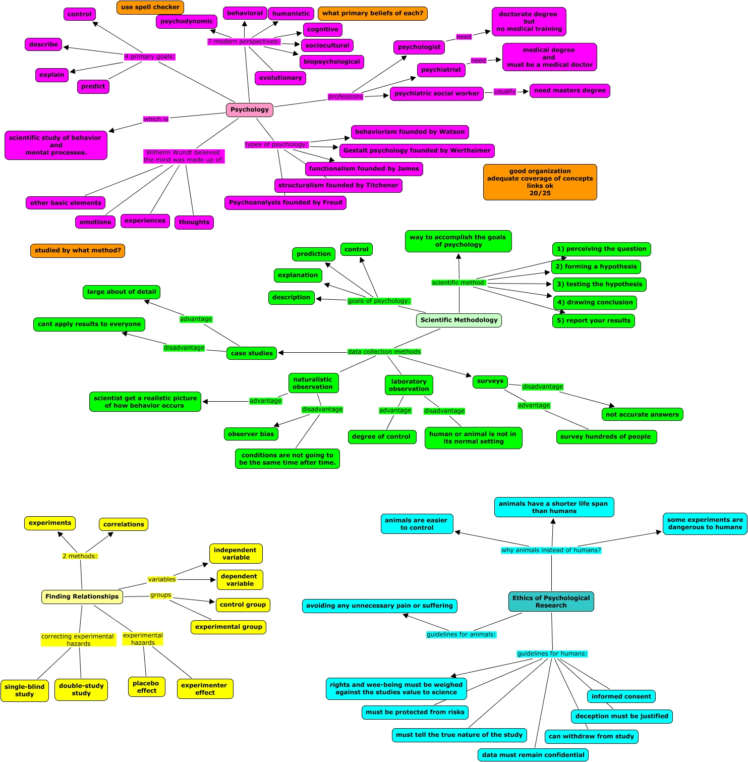 This Concept Map, created with IHMC CmapTools, has information related to: brooke chandler ch1 20, Scientific Methodology data collection methods surveys, psychiatric social worker usually need masters degree, Psychology 4 primary goals: control, Ethics of Psychological Research why animals instead of humans? animals are easier to control, Scientific Methodology scientific method 1) perceiving the question, Finding Relationships groups control group, Scientific Methodology goals of psychology: description, Psychology Wilhelm Wundt believed the mind was made up of: other basic elements, Ethics of Psychological Research why animals instead of humans? some experiments are dangerous to humans, Finding Relationships 2 methods: experiments, Scientific Methodology scientific method 4) drawing conclusion, Scientific Methodology scientific method way to accomplish the goals of psychology, Scientific Methodology scientific method 5) report your results, Finding Relationships variables dependent variable, Psychology 7 modern perspectives: sociocultural, Psychology types of psychology: Gestalt psychology founded by Wertheimer, surveys advantage survey hundreds of people, Psychology 7 modern perspectives: cognitive, Scientific Methodology goals of psychology: control, Psychology 4 primary goals: describe