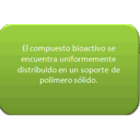 1- MECANISMOS DE LIBERACIÓN DE FÁRMACOS DESDE MATERIALES POLIMÉRICOS.cmap Compuesto bioactivo.png Difusión de agentes bioactivos.cmap Dosificación controlada por vía química.cmap Liberación del principio activo.png Matriz polimérica.png Mecanismos de liberación de farmacos desde materiales poliméricos.pdf Sistema controlado por difusión.pptx Sistema de hinchamiento.png Sistemas Bioerosionables.cmap Sistemas con cadenas laterales.pptx Sistemas con depósito o Sistemas con un núcle interno.cmap Sistemas controlados por el disolvente.cmap Transportadores.png