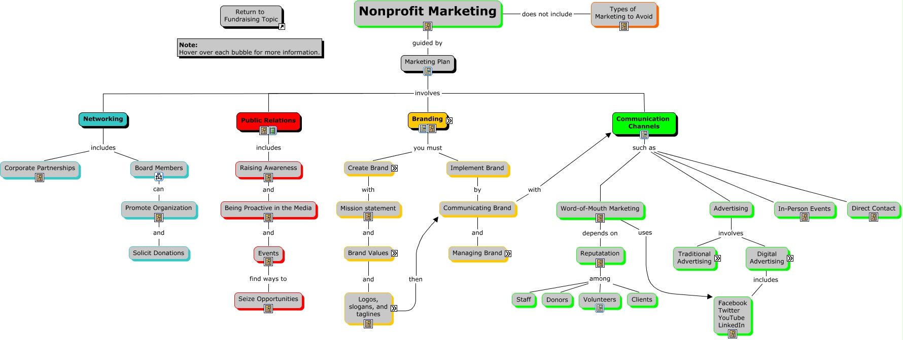 This Concept Map, created with IHMC CmapTools, has information related to: Marketing MINOR, Public Relations includes Raising Awareness, Logos, slogans and taglines consistently use Typefaces Color Palettes, Events find ways to Seize Opportunities, Reputatation among Staff, Advertising involves Digital Advertising, Networking includes Corporate Partnerships, Being Proactive in the Media and Events, Marketing Plan involves Networking, Word-of-Mouth Marketing uses Facebook Twitter YouTube LinkedIn, Branding you must Create Brand, Traditional Advertising includes Outdoor Ads, Communicating Brand with Communication Channels, Digital Advertising includes Email (E-Newsletters), Marketing Plan involves Branding, Logos, slogans, and taglines then Communicating Brand, Communication Channels such as Direct Contact, Communicating Brand and Managing Brand, Marketing Plan involves Communication Channels, Reputatation among Donors, Brand Values and Logos, slogans, and taglines