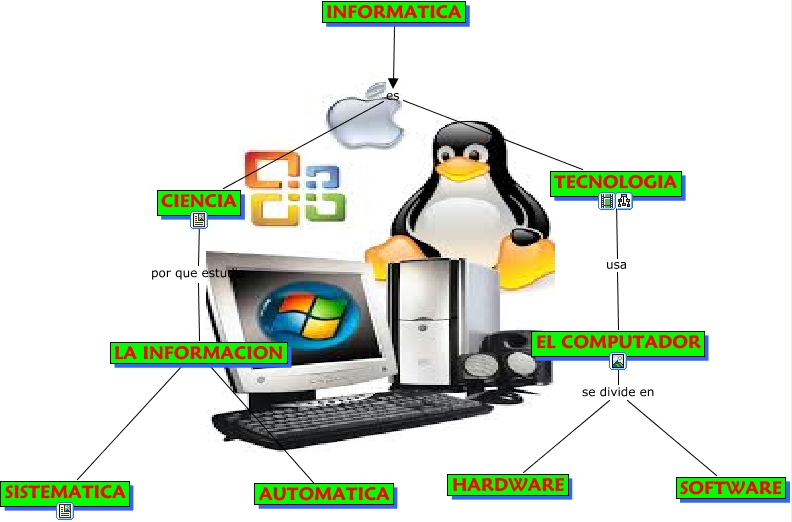 Este Cmap, tiene información relacionada con: compu, TECNOLOGIA usa EL COMPUTADOR, LA INFORMACION ???? SISTEMATICA, INFORMATICA es CIENCIA, CIENCIA por que estudia LA INFORMACION, LA INFORMACION ???? AUTOMATICA, INFORMATICA es TECNOLOGIA, EL COMPUTADOR se divide en SOFTWARE, EL COMPUTADOR se divide en HARDWARE