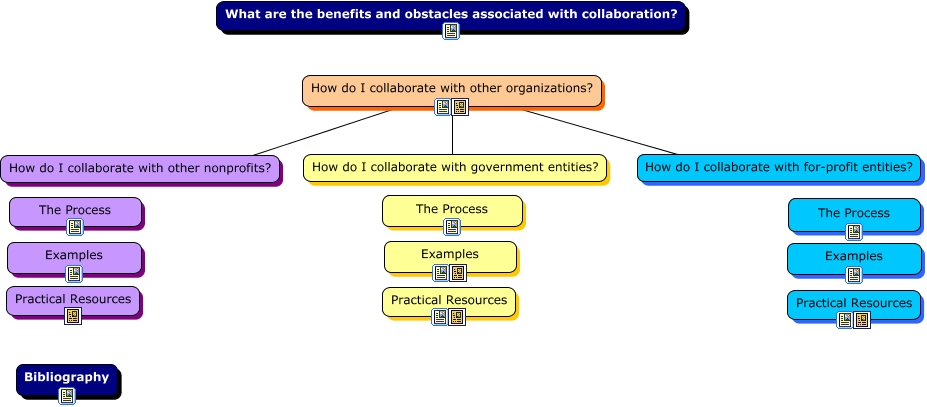 This Concept Map, created with IHMC CmapTools, has information related to: Collaboration - Major, How do I collaborate with other organizations? ???? How do I collaborate with government entities?, How do I collaborate with other organizations? ???? How do I collaborate with for-profit entities?, How do I collaborate with other organizations? ???? How do I collaborate with other nonprofits?