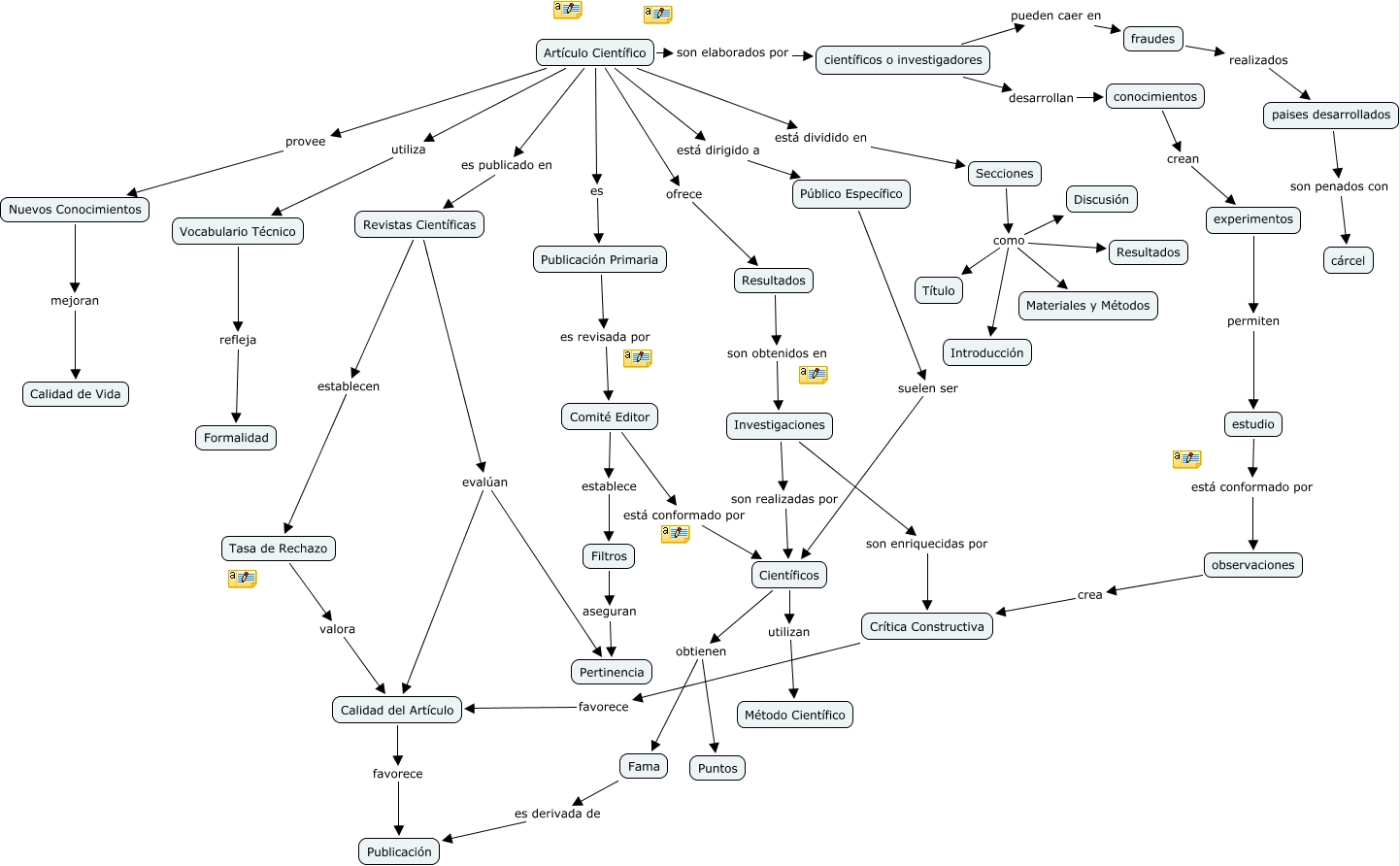 Este Cmap, tiene información relacionada con: Mapa Art. científico de Adrian, Laura y Marianella CORREGIDO, Nuevos Conocimientos mejoran Calidad de Vida, fraudes realizados paises desarrollados, Científicos utilizan Método Científico, Revistas Científicas evalúan Calidad del Artículo, experimentos permiten estudio, científicos o investigadores pueden caer en fraudes, Artículo Científico utiliza Vocabulario Técnico, Artículo Científico está dirigido a Público Específico, Filtros aseguran Pertinencia, Secciones como Materiales y Métodos, Secciones como Discusión, Resultados son obtenidos en Investigaciones, Secciones como Título, Científicos obtienen Puntos, estudio está conformado por observaciones, Comité Editor está conformado por Científicos, Artículo Científico ofrece Resultados, científicos o investigadores desarrollan conocimientos, observaciones crea Crítica Constructiva, Artículo Científico provee Nuevos Conocimientos